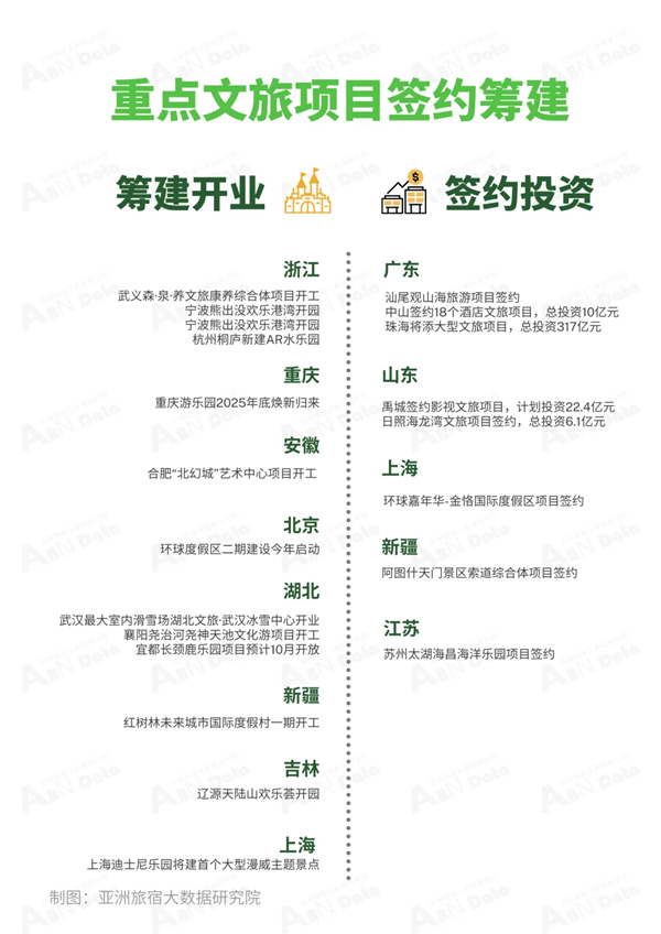 根据亚洲旅宿大数据研究院最新监测数据,8月新签201个重点文旅项目,涉及多个文旅综合体及部分主题乐园筹建。监测名录里涉及的重点项目有: