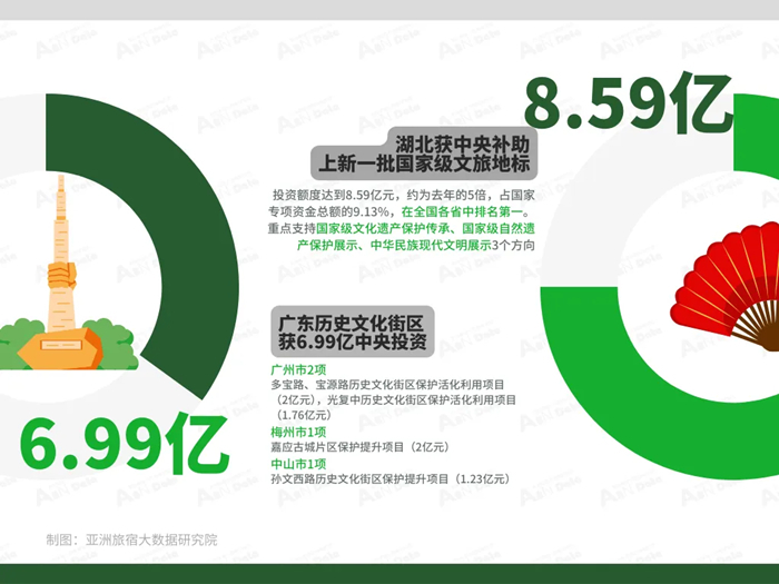 湖北获中央补助8.59亿元,将上新一批国家级文旅地标。湖北省文化保护传承利用工程专项2024年中央预算内投资已经下达,经省发改委、省文旅厅积极争取,今年湖北省获取投资额度达到8.59亿元,约为去年的5倍,占国家专项资金总额的9.13%,在全国各省中排名第一。