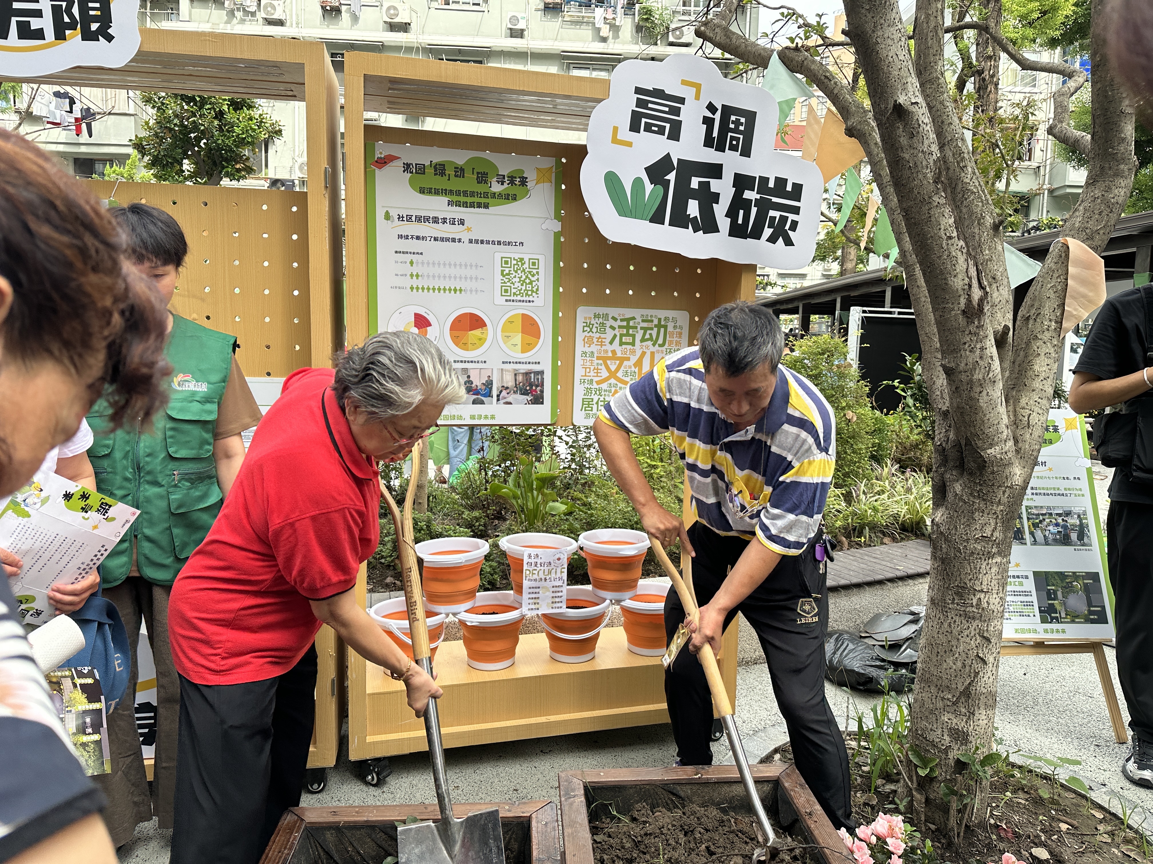 据了解,硬化路面下的土壤用来种植植物前,需要改善土质,咖啡渣便是一种很好的原材料。今天,不少居民在低碳市集上领到了一包咖啡渣,大家计划用于岩石花箱和共创百草园里。这些咖啡渣其实也来源于小区内部,尽管小区布局紧凑,却有一座居民们的食堂兼咖吧,“量不大但是胜在稳定”,这家公益咖啡店是由黄浦区文明办推动的社区长者文明修身课堂“BAN饮·雅集”,此前产生的咖啡渣有的被小区里的小朋友们做成了手工艺品,有的被居民拿回家种花,今后将助力小区低碳花园形成生机勃勃的景象。