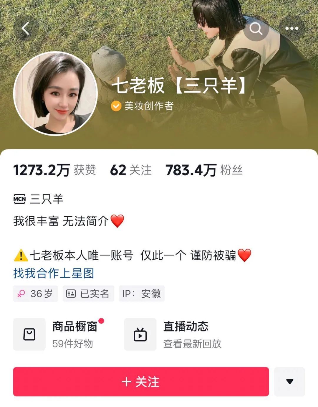 但不过一年时间,七老板粉丝暴涨几百万。目前,七老板抖音账号粉丝数为783.4万。