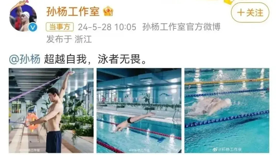 2024年5月28日,孙杨结束了4年零3个月的禁赛,这标志着他泳池竞技生涯的重新开启。当天,孙杨工作室发文:“超越自我,泳者无畏”。