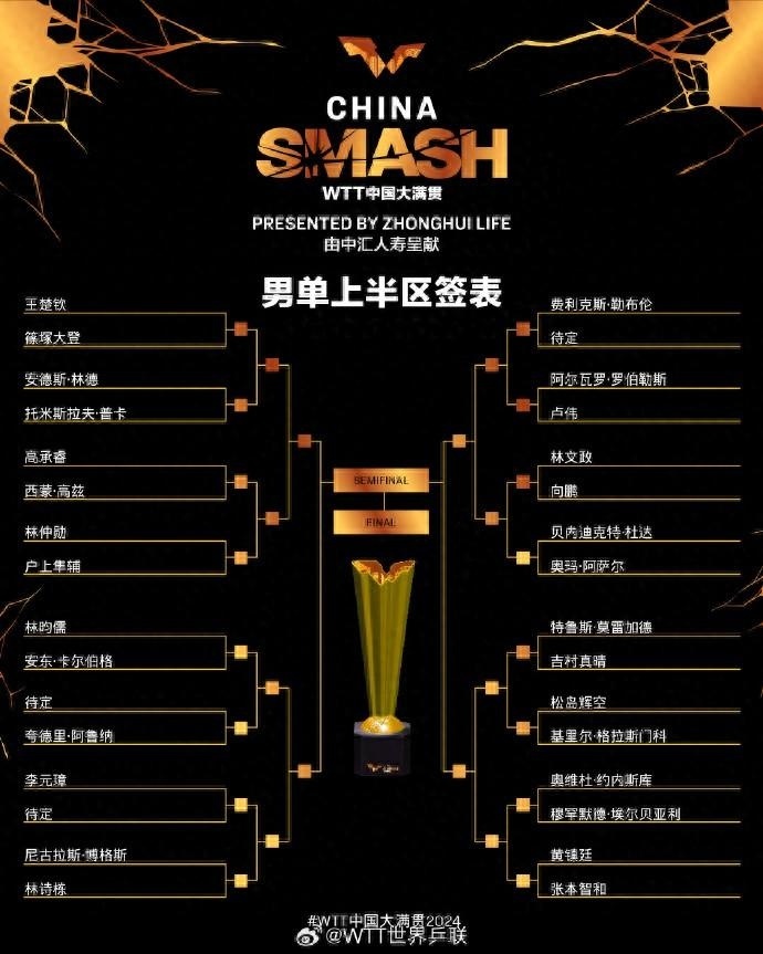 9月27日,WTT世界乒联中国大满贯抽签仪式举行,乒乓球男子单打签表出炉,正赛将于29日在北京石景山首钢园区打响。