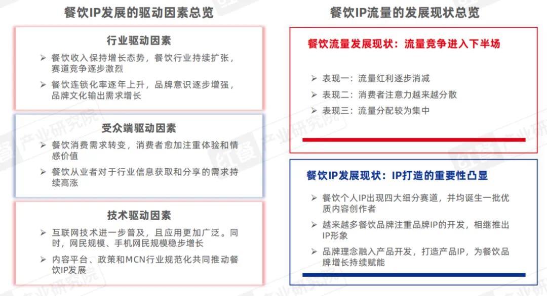 餐饮IP的快速发展离不开餐饮行业竞争日益激烈、餐饮内容消费需求迅猛增长以及互联网、社交媒体被广泛应用等重要因素的推动。