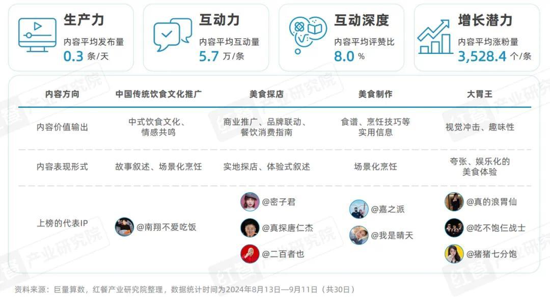4.美食探店IP:内容娱乐性较强,互动力、互动深度、增长潜力均较高