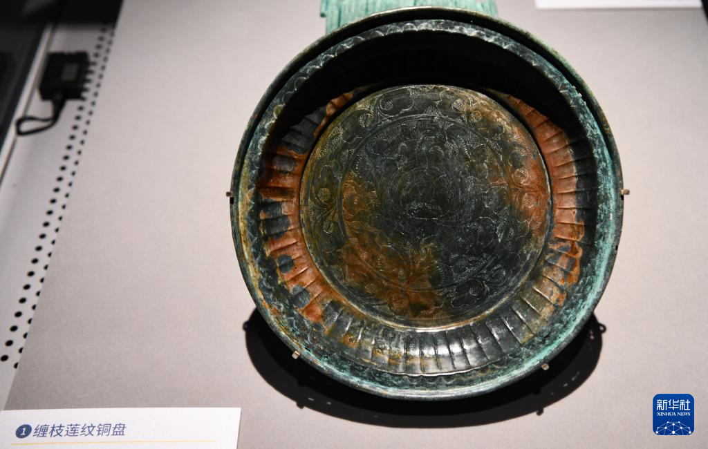 这是9月27日拍摄的特展展品——缠枝莲纹铜盘。 新华社记者 杨冠宇 摄
