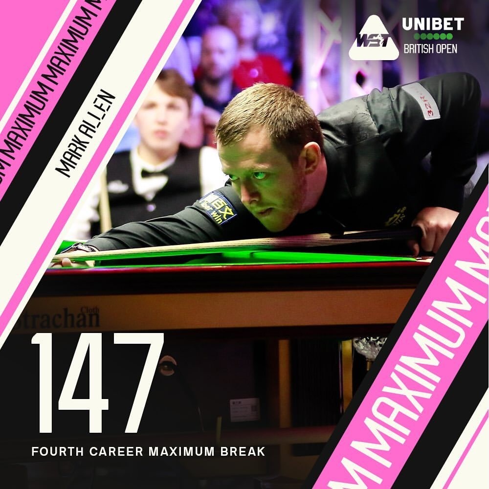 这是马克-艾伦打出的职业生涯第四杆满分,也是本赛季第三杆147,同时也是历史第205杆147!