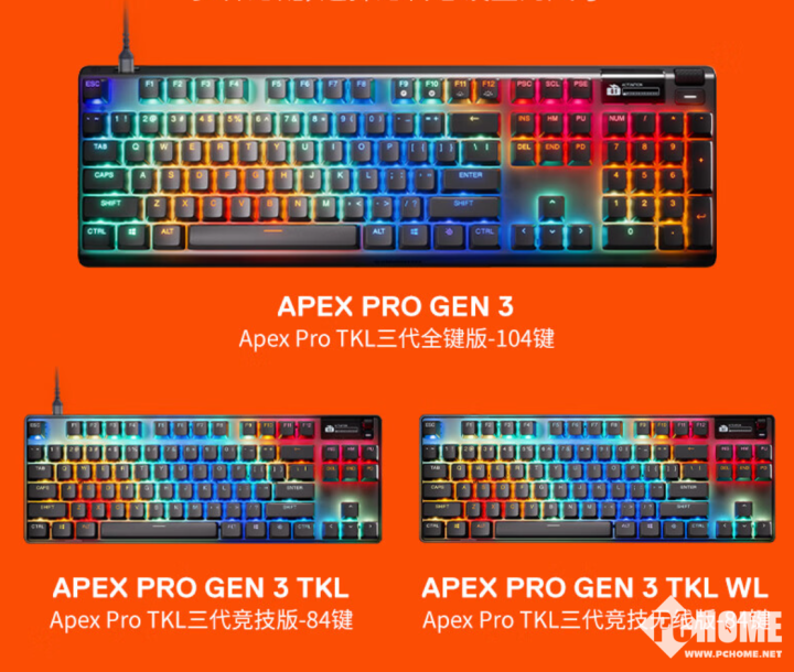 赛睿(SteelSeries)近日推出了Apex Pro Gen 3系列三代磁轴键盘,采用全新垫带霍尔效应轴体,售价2099元起。