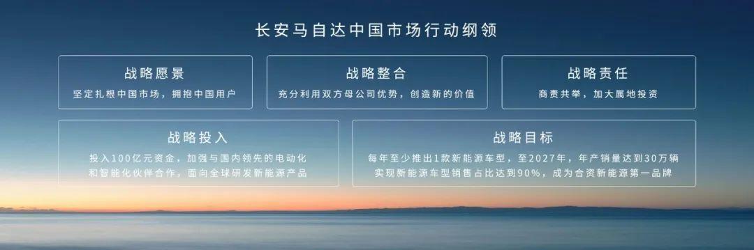 值得一提的是,面向2027,长安马自达汽车有限公司执行副总裁邓智涛正式发布了《长安马自达中国市场行动纲领》,再次表明拥抱中国市场、更好地为中国市场用户服务的坚定决心。按照规划,从2024年开始,每年至少向中国市场推出1款新能源车型,不断扩大轿车、SUV细分市场覆盖。2027年力争实现新能源车型销售占比达到90%,年产销量达到30万辆,成为合资新能源第一品牌。