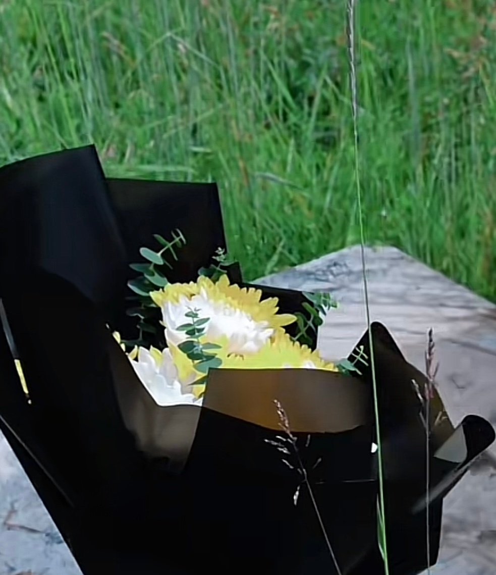 王晨正在爷爷坟前献的花。图/受访者供图