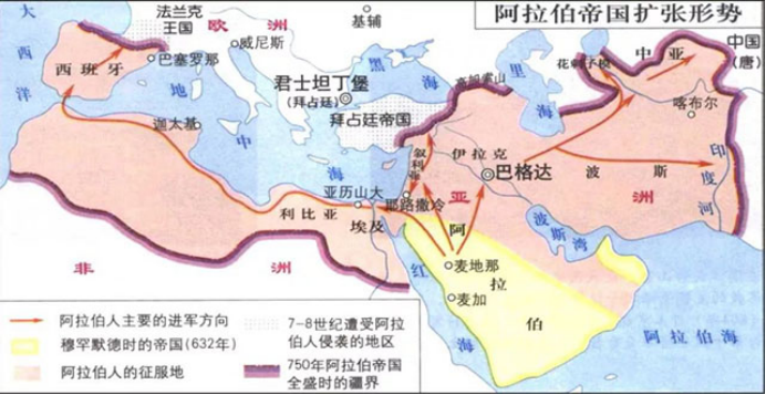 ▲阿拉伯帝国的一系列政策有利于阿拉伯人快速扩张和融合
