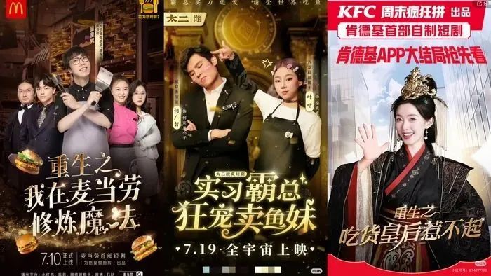 不久前,肯德基的首部自制短剧《重生之吃货皇后惹不起》正式上线,作品围绕重生元素,讲述了一个爱吃鸡腿的女生,偷吃鸡腿被鸡吓到后重生在一位现代女演员身上的故事。故事从第二集开始就频繁出现了肯德基的套餐和产品,整体的广告气息很浓郁。目前抖音播放量超14亿,是所有餐饮品牌中播放量最高。