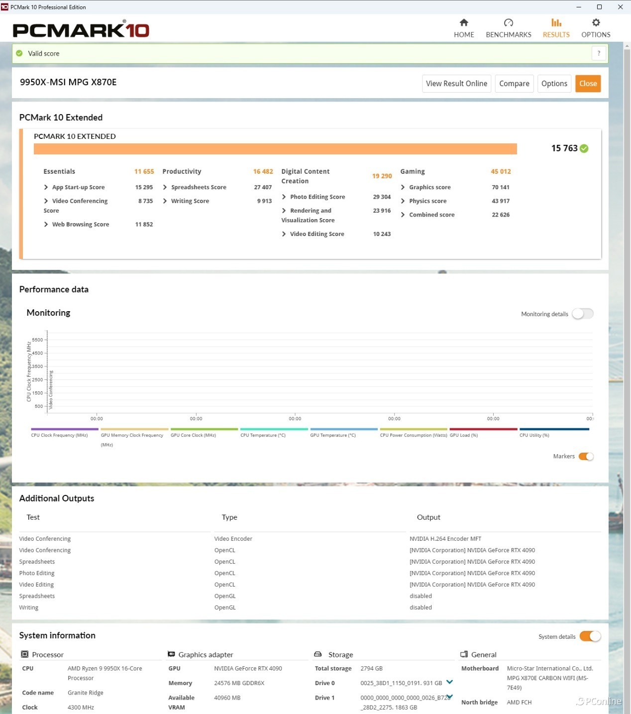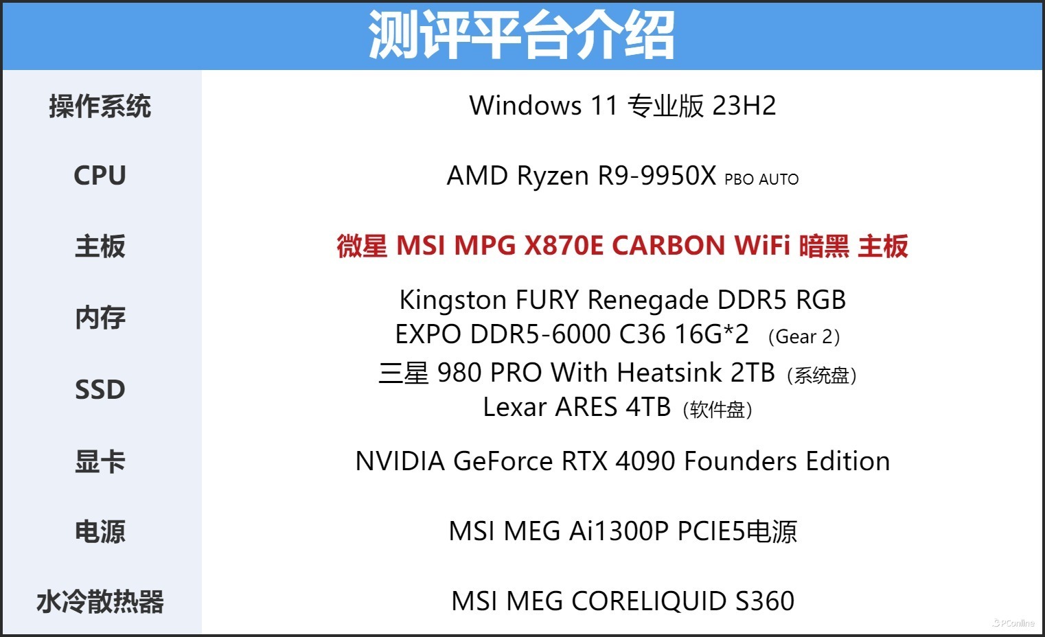 压力更大的视频剪辑测试里得分11769,这也充分说明它的性能相当优越,微星MSI MPG X870E CARBON WIFI暗黑主板不错的平台基础,让R9-9950X以及RTX 4090有了绝佳的发挥空间,能够胜各种创作生产力需求。
