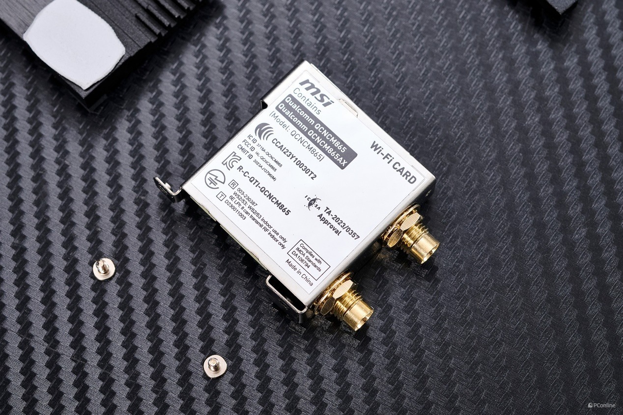 无线方面,网卡则是高通的QCNCM865,支持WiFi 7协议,理论峰值速率能去到5.8Gbps,频宽可达320MHz,支持4096-QAM,相比WiFi 6E要强上不少。