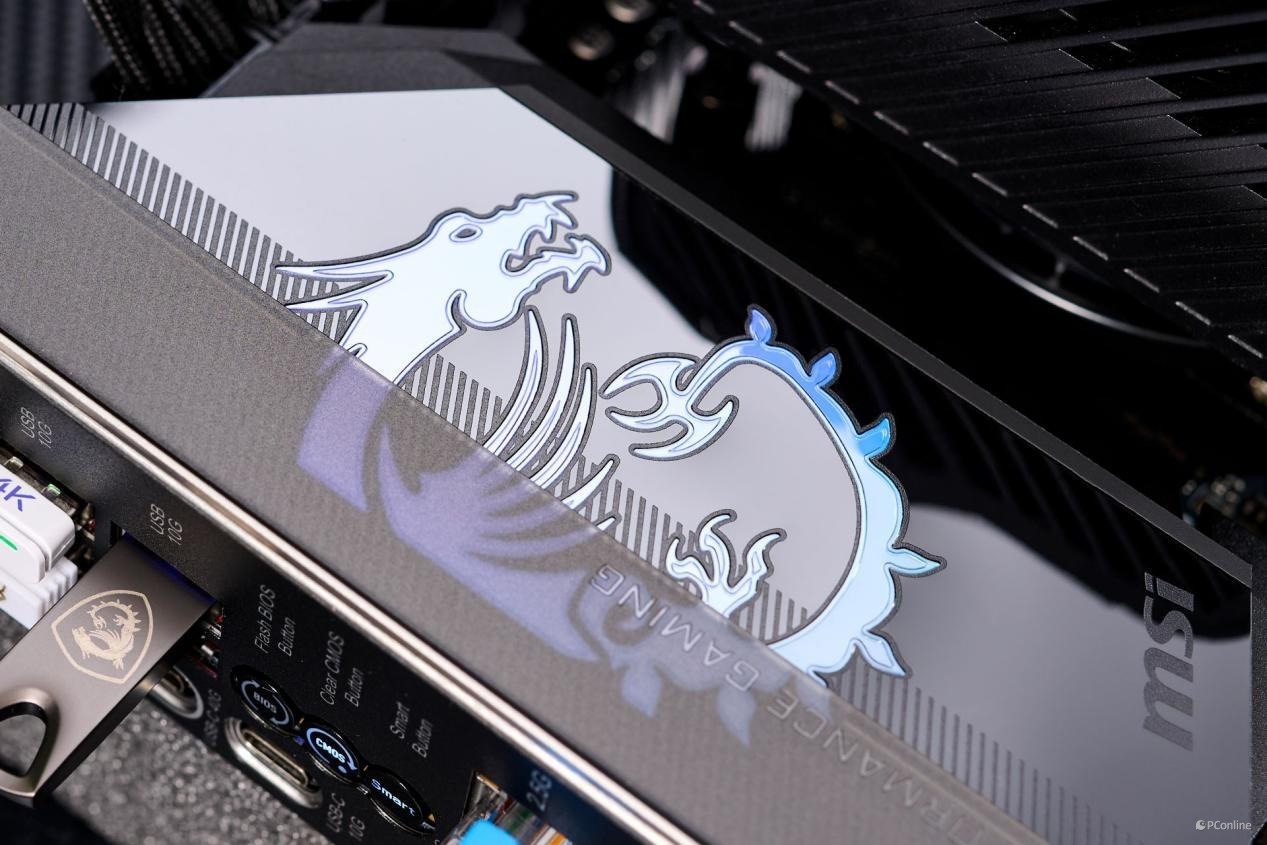 接口的升级才是本次的重点,清一色USB 3.2 Gen 2×1接口取代了原有的USB 2.0,超高传输速率的USB4接口一次就给到2个。除此之外,GPU和M.2插槽都支持PCIe 5.0,甚至于微星还给这款主板安排了PCIe额外的8Pin供电,战未来属性拉满。同时,还有WIFI 7以及5G+2.5G双网口配备,用料十足。