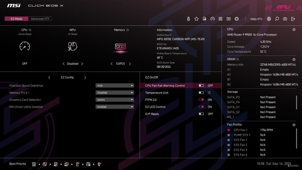虽然外观变化,不过操作逻辑还是一样的。简易模式下,EXPO、PBO、开关核显等功能都直接放在了显眼的位置,玩家能够轻松控制。而按F7则可以进入高级模式,这里能对平台进行更多自定义设定。