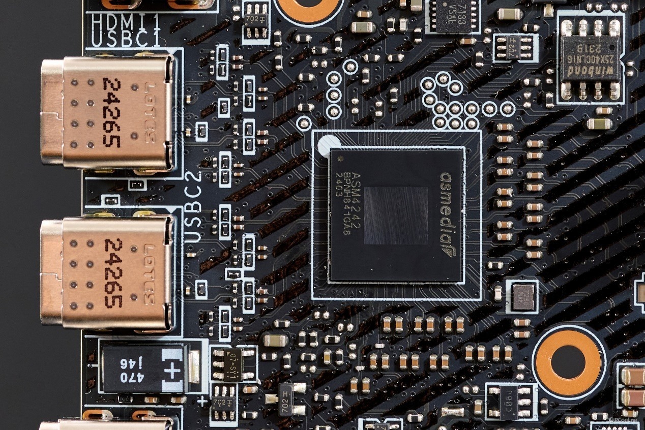 而USB4接口则是由祥硕ASM4242主控提供,这款主控还获得了雷电4认证,这也让其成为全球少数拥有独立型USB4及雷电4双认证的主控端芯片,未来出现雷电4的AMD主板也不是不可能。
