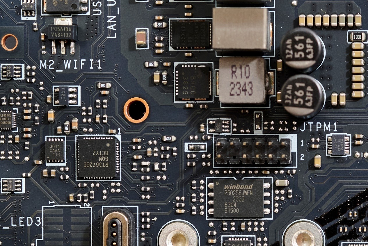 上层PCB主要用于扩展是USB 3.2 Gen 2×1接口,也就是我们刚刚说的USB-A 10Gbps接口,其中6个都由这款小小的瑞昱RTS5420芯片扩展。