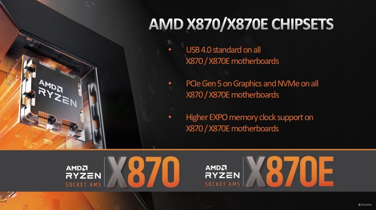 开始前,照例聊聊芯片组,新的AMD 800系主板沿用了AM5接口,因此现有的AMD 600系主板其实只需要更新BIOS就能使用新处理器。同时AMD还承诺,AM5接口至少沿用至2027年,因此玩家大可放心,新阶段购买新的800系主板绝对不会被“背刺”,甚至还能“战未来”。