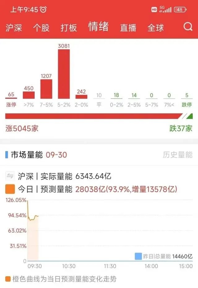 A股交投热情高涨,开市不到15分钟,两市成交额已超6300亿元。