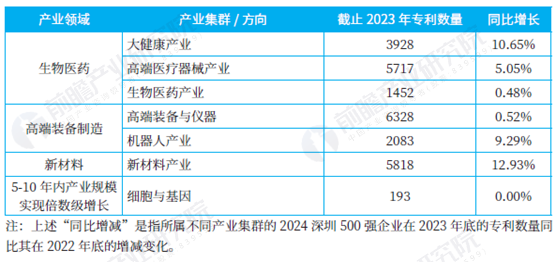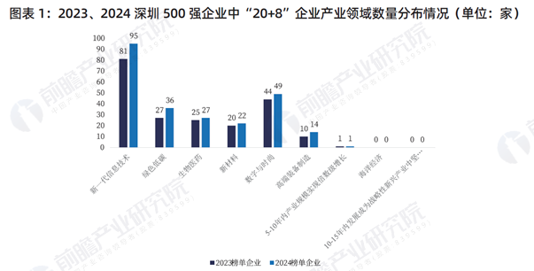 生物医药、新材料、数字与时尚、高端装备制造领域的企业数量小幅增加,表明深圳500 强企业在这些领域的投入有所加强。