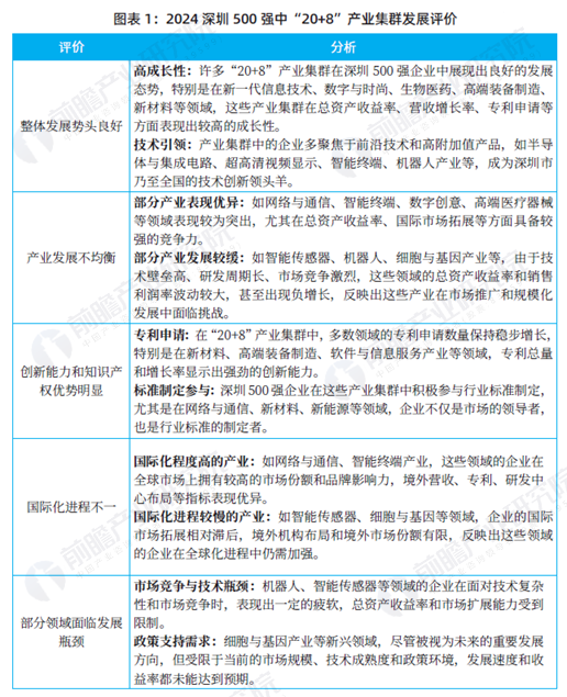 总体来看,2024深圳500强企业中的“20+8”产业集群整体发展势头良好,展现了深圳作为全球科技创新中心的潜力和实力。然而,各产业集群的发展存在不均衡现象,一些高技术含量的产业虽然具有市场潜力,但在收益率、国际化进程等方面面临挑战。