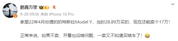 随着新能源汽车市场的日益繁荣,消费者对电动车的接受度逐渐提高。然而,关于电动车的保值率问题一直是业界和消费者关注的焦点。近期,有博主声称其2022年4月份购买的特斯拉Model Y(28.89万元),在两年半后仍能以17万元的价格出售,引发了关于电动车保值率的广泛讨论。