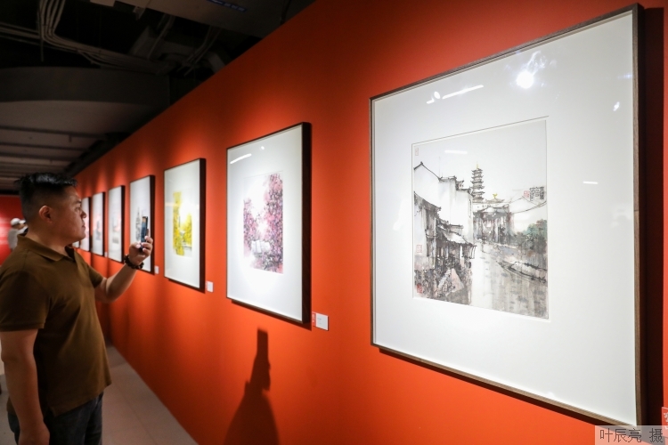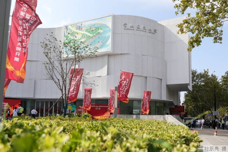 在喜迎中华人民共和国75周年华诞、宝山滨江焕新发展之际,宝山书画名家纷纷深入基层采风创作,以书画礼赞伟大祖国,祝福美好宝山。开馆仪式上,“大美宝山”系列优秀美术书法作品大展正式揭幕。展览汇聚众多宝山名家绘画、书法、篆刻作品,尽现当地人文风情。吴淞口国际邮轮港的大气、百年灯塔的厚重、长滩音乐厅等地标建筑的独特魅力、宝钢印象的雄浑、上海淞沪抗战纪念馆的庄严、顾村公园的秀丽、罗店古镇与宝山寺的古朴、大交通的便捷等一一呈现,将持续展出至12月30日。