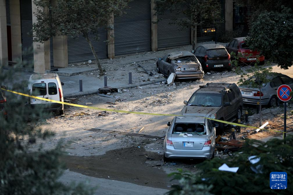 这是9月30日在黎巴嫩首都贝鲁特城区拍摄的以军空袭后的景象。