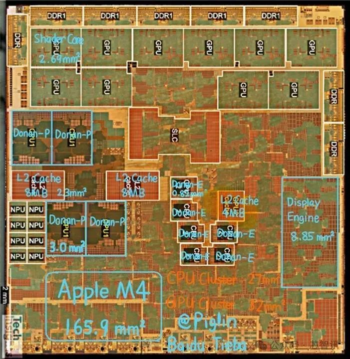 9月30日消息,近日网友 @Piglin 在百度贴吧发布了一张据称是高通骁龙X 处理器内部结构图,展示了其内部的12个CPU内核以及巨大的缓存,整体的芯片面积达到了169.6平方毫米,略高于苹果的10核心的M4的面积169.6平方毫米。