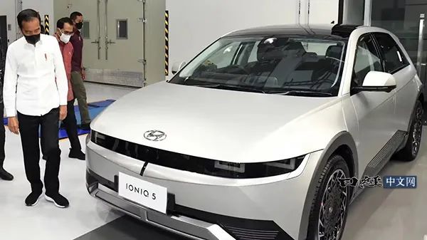 现代汽车2022年在印尼开设工厂。印尼总统佐科视察了工厂(总统府提供)