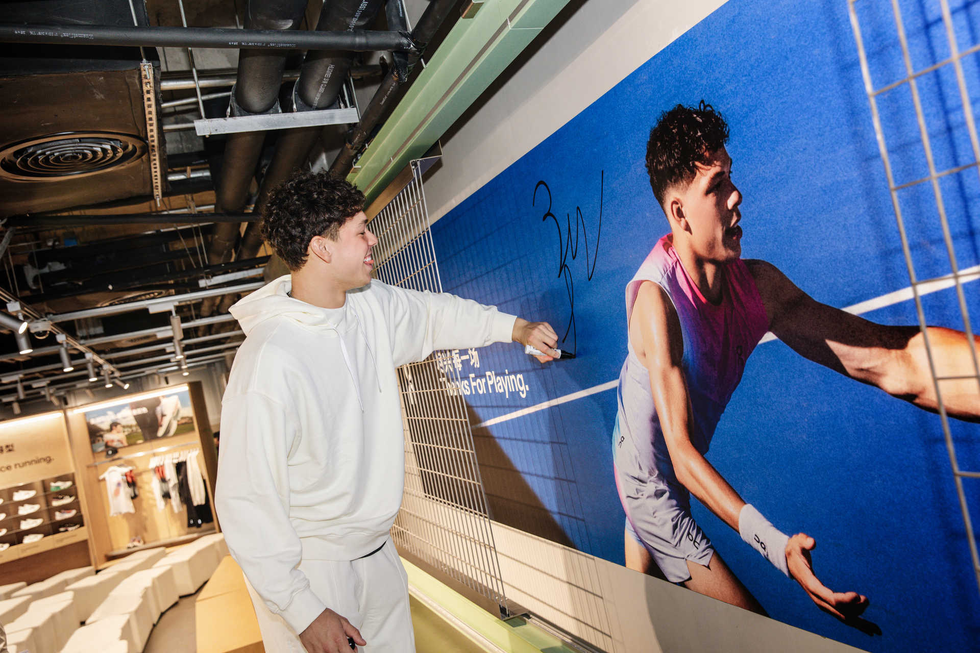 作为瑞士运动品牌On昂跑的签约运动员,谢尔顿凭借他率性而又充满朝气的笑容,与沪上年轻人共同释放青春热力,同享网球运动带来的拼搏和乐趣。