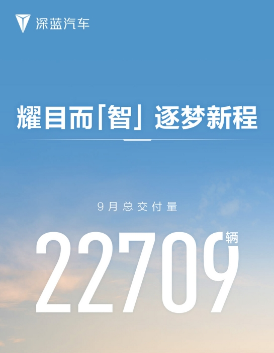 【CNMO科技新闻】近日,CNMO获悉深蓝汽车9月总交付量22709辆。其中,深蓝S07上市2个月的时间,累计订单达30158台。这样的销售数据也显示出了深蓝汽车正在稳步前行。
