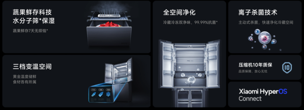 此外,冰箱冷藏冷冻都支持抗菌净化,冷藏室风道内搭在正负离子发生器,主动进行净化,实现净味、除菌、除病毒、除乙烯、除农药残留,呵护家人健康,冷冻室搭载了阴离子抗菌模块,食材长期存放更安心。同时还拥有水分子筛技术,可以选择性的透过水蒸气分子,减少蔬果的水分流失,保持蔬果新鲜。