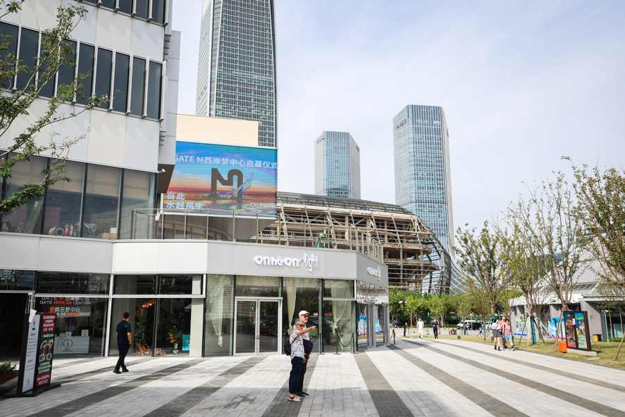 市民游客在西岸梦中心北段公共区域游乐。舒抒摄