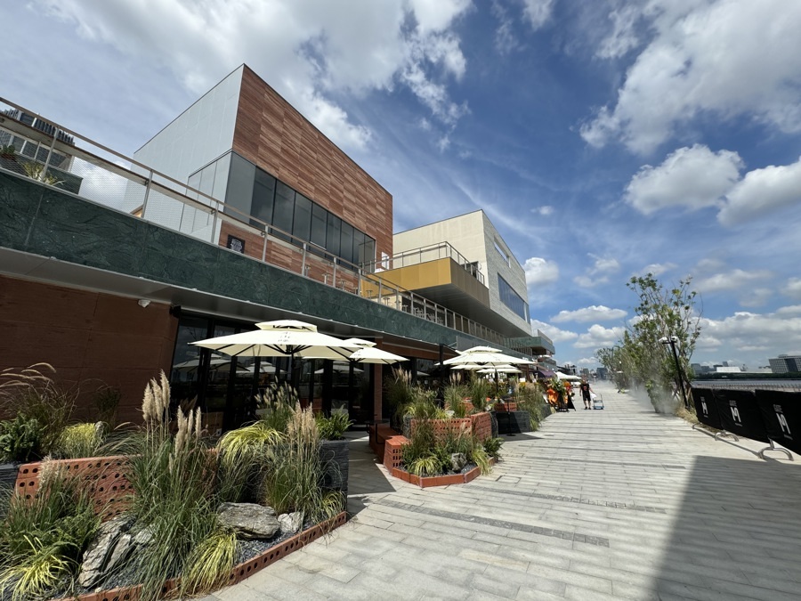 沿江餐饮区设置了令人倍感松弛的外摆区来配合沿江风光,人气品牌云集,包括川菜新秀瓦屋上海首店、意大利美食Mozzarella e Vino、Chili's美式餐厅、PIZZERIA意式窑炉披萨、宝莱纳德国餐厅酒吧等环球美食。