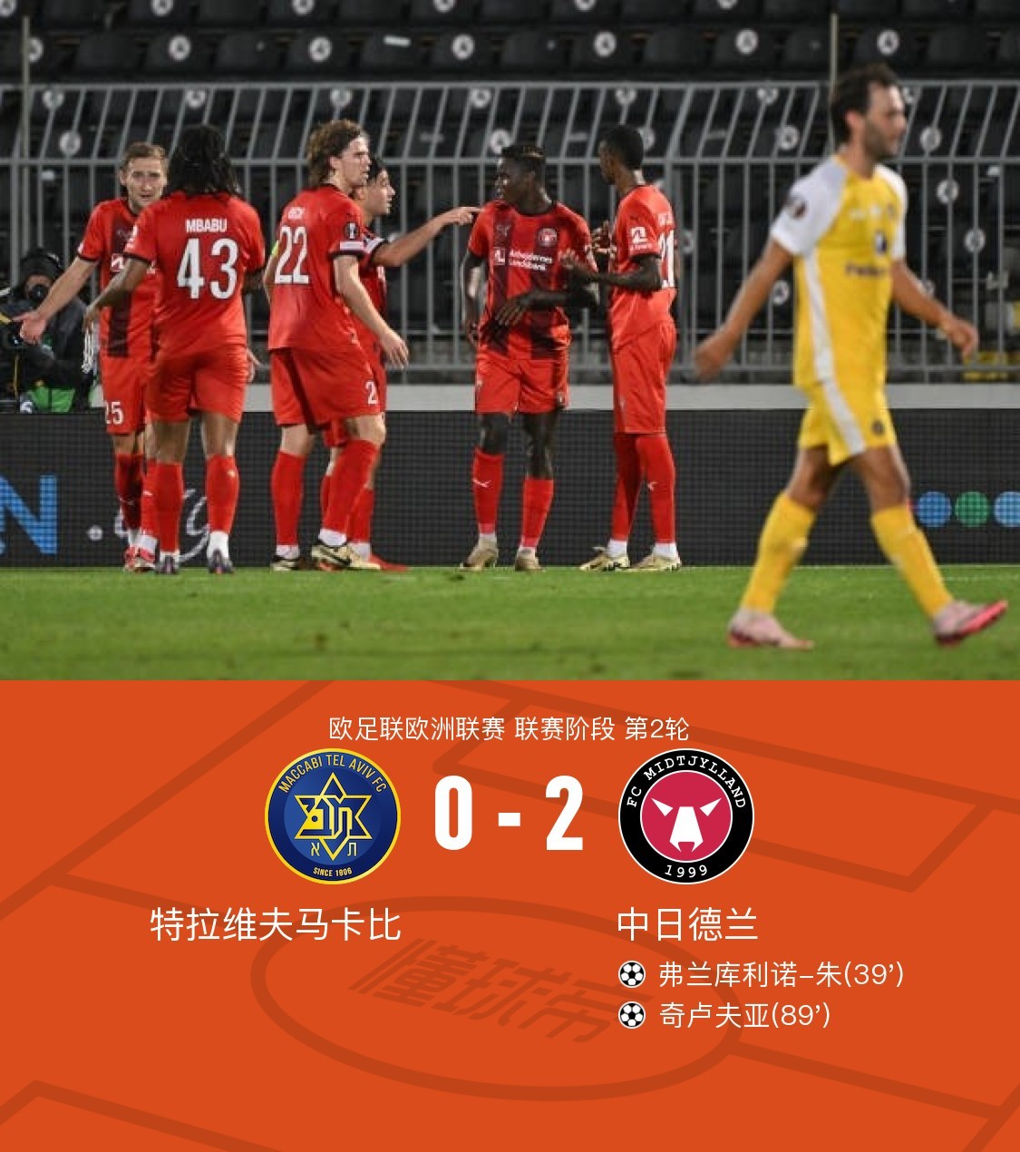 在欧足联欧洲联赛的较量中,特拉维夫马卡比迎战中日德兰。比赛中,中日德兰展现了出色的进攻能力。首先,西姆西尔送出精妙助攻,弗兰库利诺-朱成功破门,为球队取得领先。随后,阿斯基尔德森再次送出关键传球,奇卢夫亚抓住机会,将比分扩大。最终,中日德兰以2比0战胜特拉维夫马卡比,取得了比赛的胜利。