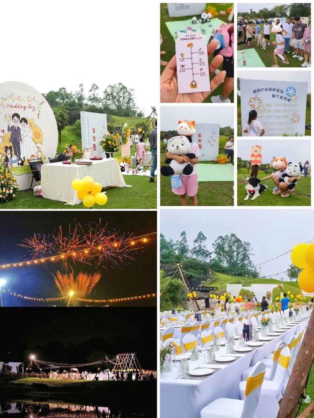 餐食以西餐为主,有一半是冷餐,有厨师现场煎牛排,晚餐后还有篝火、烟花,还可以唱歌,放河灯。事后,很多人反馈从来没有参加过这么开心的婚礼。婚礼整体花费大约在6万元,包含餐食在内。