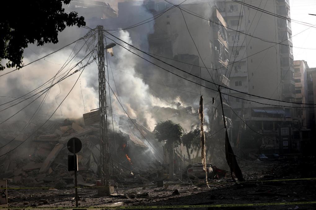 这是10月3日在黎巴嫩首都贝鲁特拍摄的空袭过后的废墟。新华社发(比拉尔·贾维希摄)