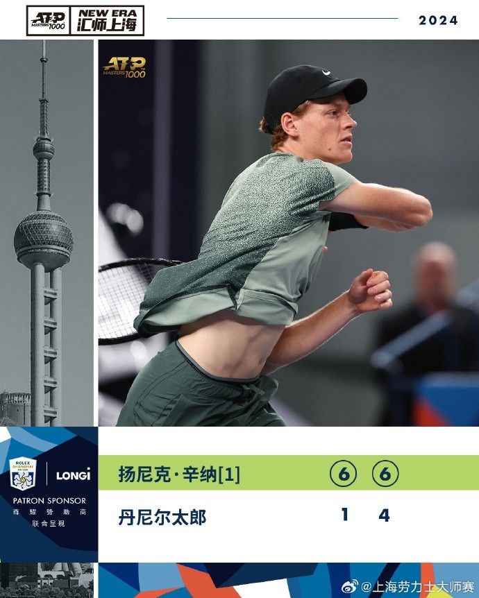 随后辛纳以6-4再胜一盘,总比分2-0横扫丹尼尔太郎,成功晋级上海大师赛男单32强。