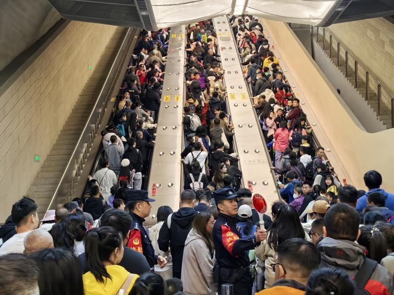 据八达岭长城站派出所副所长郭志赟介绍,“十一”假期乘坐高铁来八达岭景区游览的旅客超过5万人次,八达岭长城站也迎来了客流出行高峰。为确保辖区治安环境稳定,确保广大旅客平安出行,假期期间,八达岭长城站派出所全员上岗,将警力部署在一线,并在进站安检区、候车室检票口、出站大扶梯下等重点部位增设岗位,配合车站客运部门现场维持进出站旅客乘扶梯秩序,全面提升见警率和管事率。