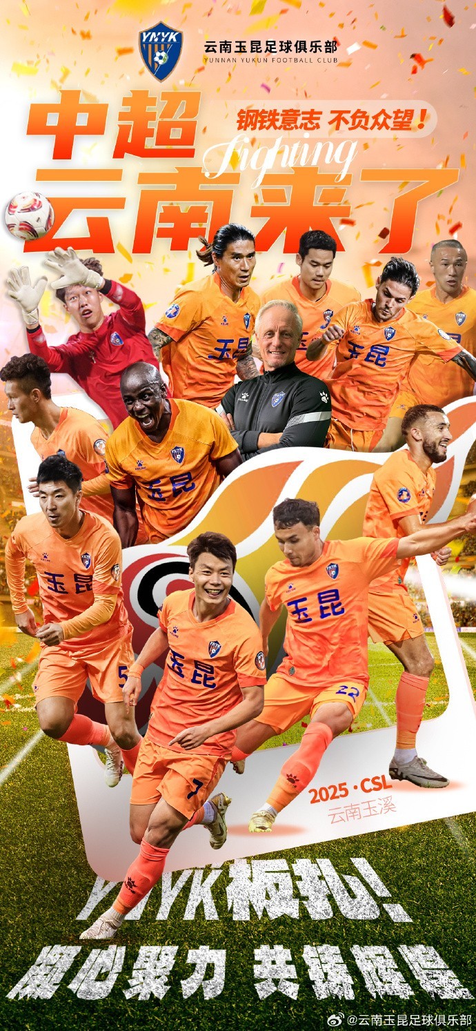 10月6日晚上,云南玉昆在中甲联赛第26轮的比赛里击败了上海嘉定汇龙,成功实现冲超。赛后,云南玉昆发布了冲超海报。