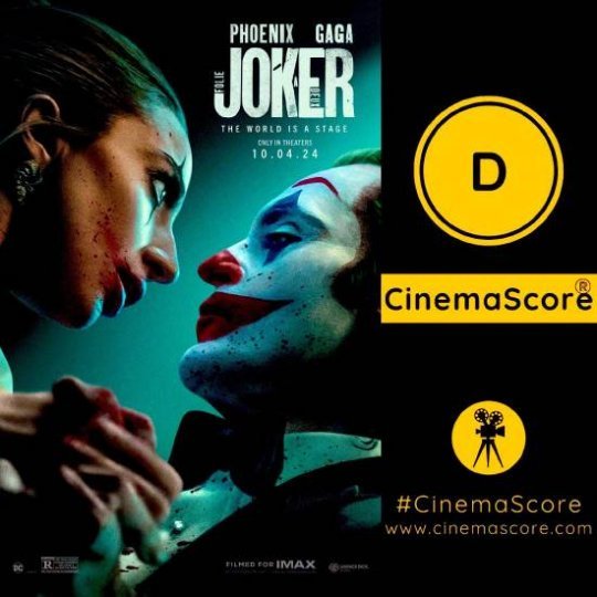 《小丑2:双重妄想》北美观众打分出炉,评分为“D”,是漫画改编电影中的最低观众打分。