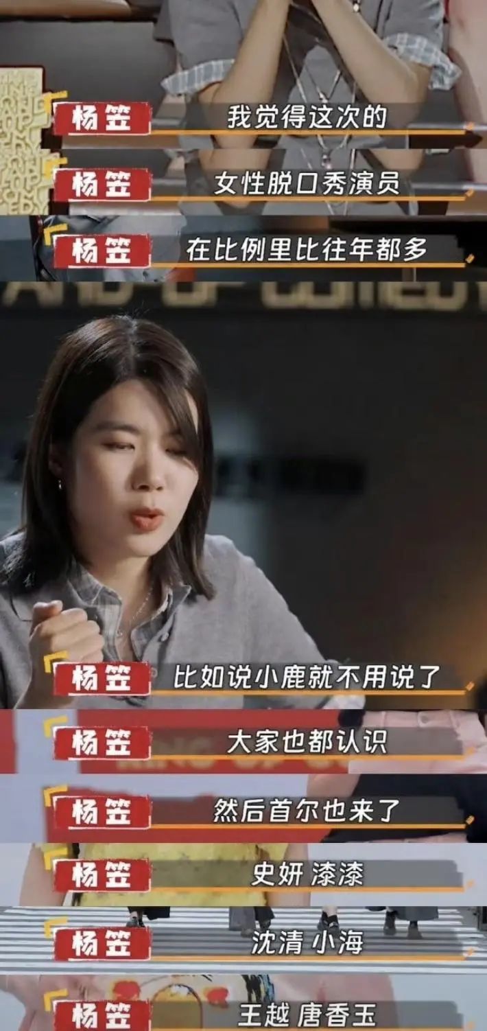 Echo并非今年唯一出圈的女选手,从菜菜调侃月经羞耻,到小鹿的“婚礼是我一个人的项目”,再到杨笠说自己这是最后一次参加线上脱口秀比赛类综艺,今年两档脱口秀节目中出圈女选手的比例比以往任何一季节目都高。