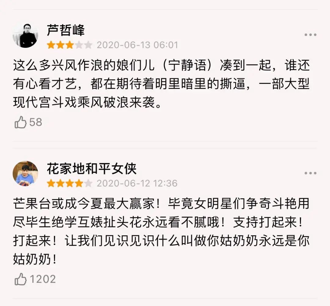 但就连女性的竞争意识也在逐渐失去感兴趣的观众,因为当社会情绪开始抵制影视内容中的“焦虑”“较真”“现实呈现”,女性之间的竞争与认真,便让节目变得沉重、无趣起来。绝大部分的女艺人也被观众诟病为“缺少综艺感。”