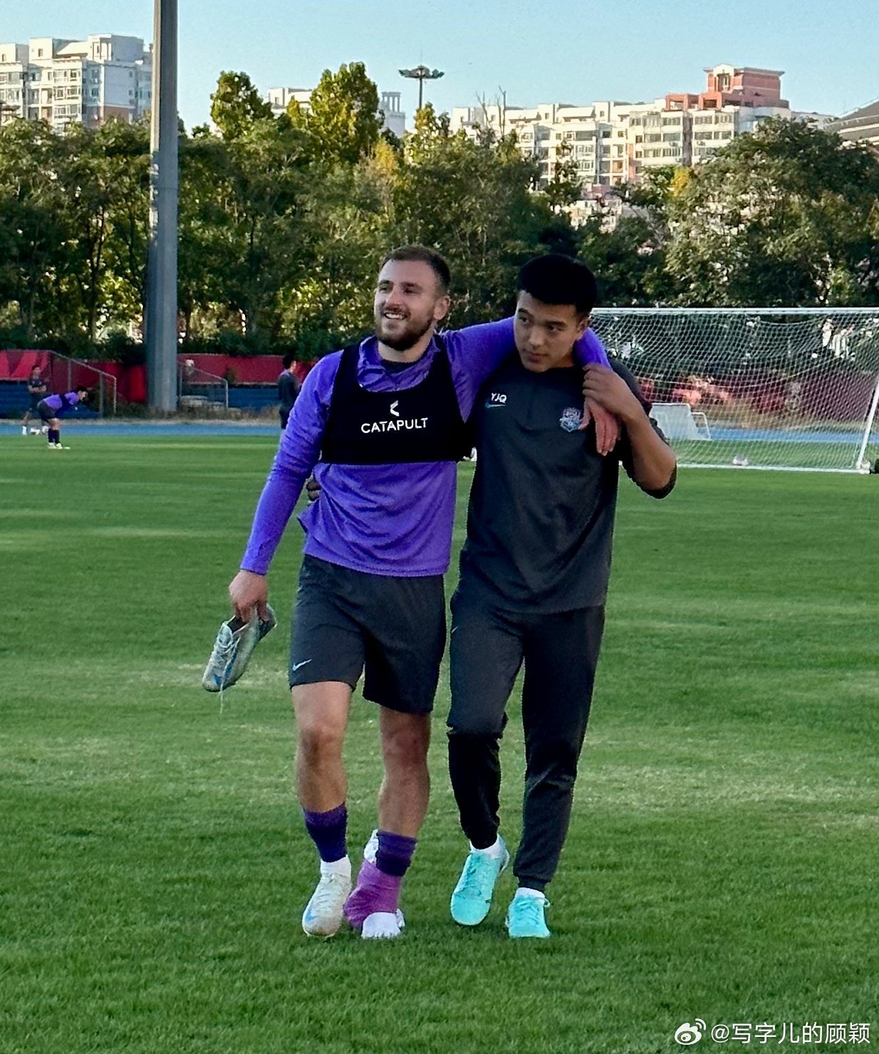 记者顾颖晒出图片,并写道:“今天训练,奔跑必然撒欢儿的阿代米崴脚了,被医疗组的小伙伴搀扶下来了,紧跟着就很乖跟队医沈大夫在一起了,好消息是,应该问题不大。”