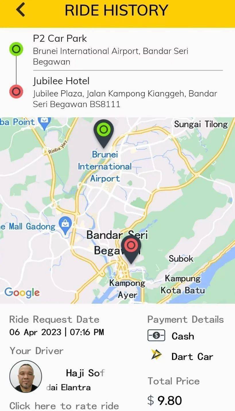 而不会开车的我,只能选择下载文莱专属打车软件Dart。在文莱打车可是一件奢侈事,从机场到酒店,十几分钟的路程,居然需要9.8文莱元,折合50多元人民币!