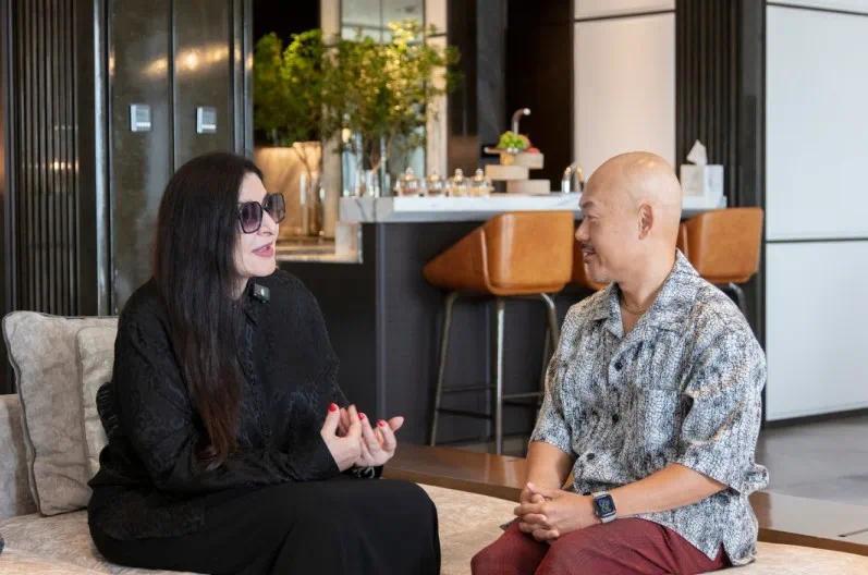 左:玛丽娜·阿布拉莫维奇,右:艺仓美术馆 馆长 余光照,2024年9月26日,JW万豪酒店 ,摄影:Photo by JJPHOTO