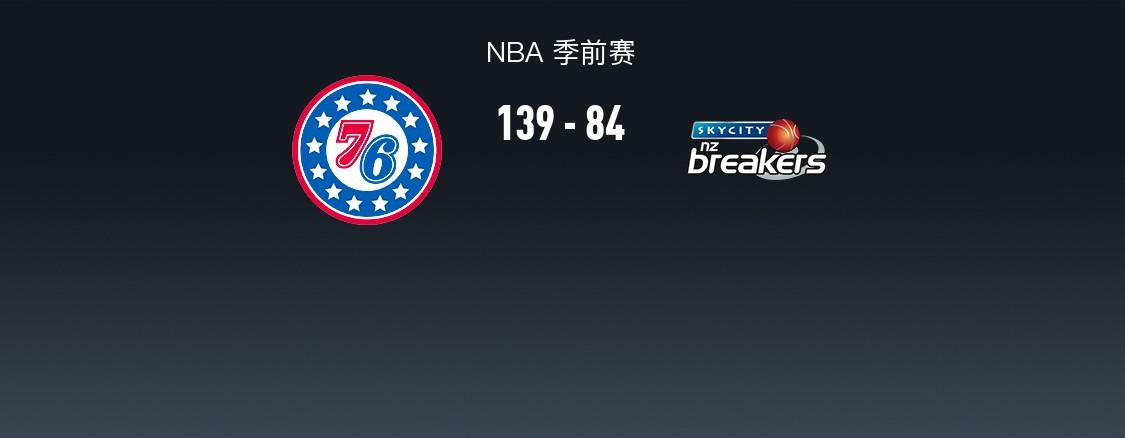 第四节76人奎诺内斯拿下7分,新西兰破坏者麦斯达宁拿下4分,最终76人139-84战胜新西兰破坏者