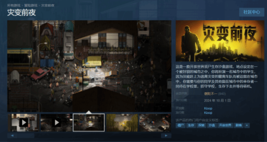 由Kioop开发与发行的开放世界丧尸生存沙盒游戏《灾变前夜》现已正式发售,游戏售价63.8元,现正进行首发优惠活动,价格为57.42元。截至发稿前,《灾变前夜》在Steam的评价为“褒贬不一”,玩家们存在着不同的看法。