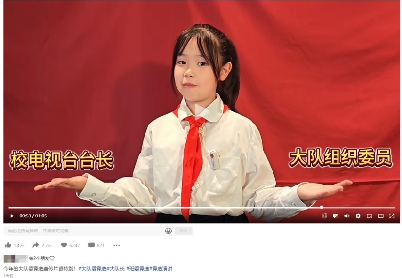 图说:上海小学生朱同学竞选大队委员的视频。 图源:视频截图